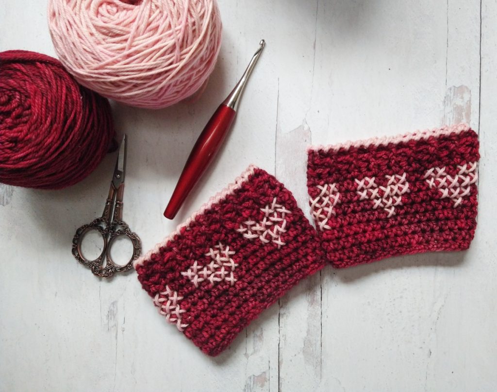 I am still in the process of getting my older patterns back on to the blog, which has been way more time consuming than I could have ever imagined. But, since it is almost February I thought this would be the perfect time to add my Cross My Heart Boot Cuff pattern.