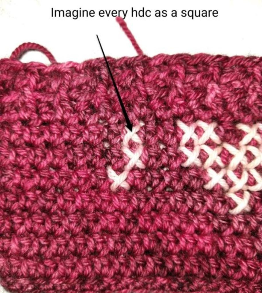 Next F-hdc: Yo, insert in bottom of previous stitch, yo, pull up a loop, yo, pull through one