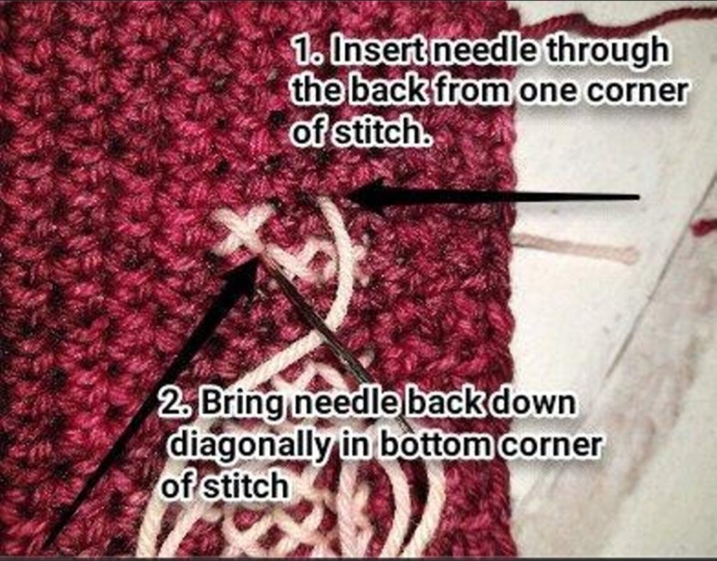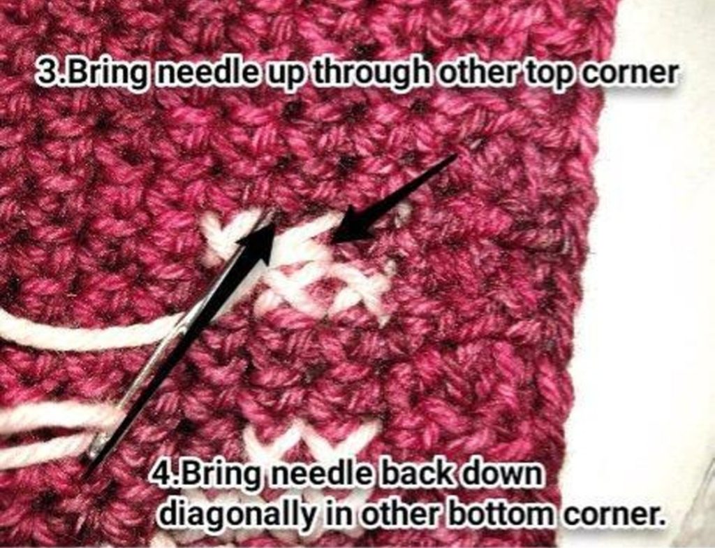 needle, cross stitch heart around the boot cuff, using the chart and photos