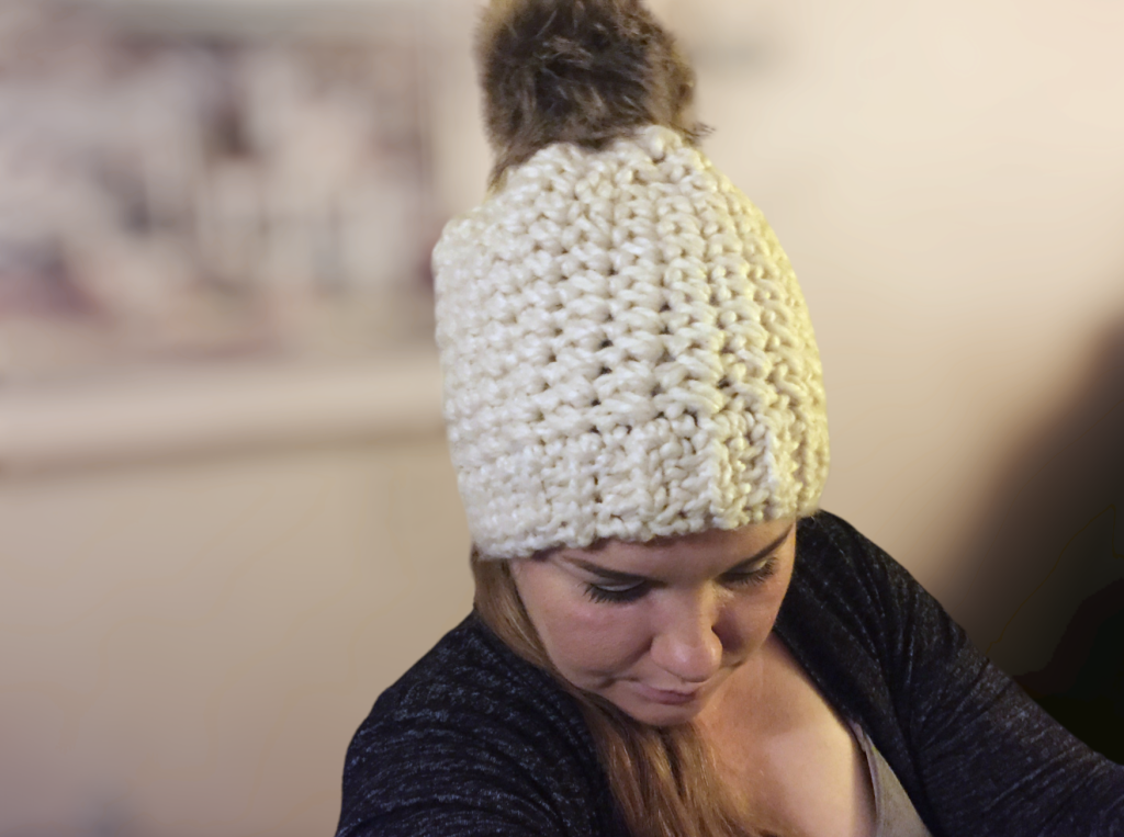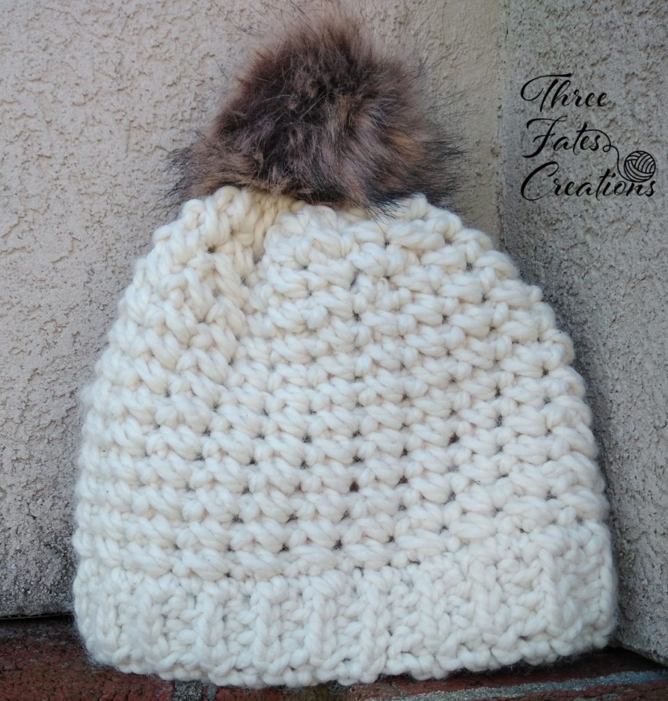 I think this hat would pair nicely with the Bulky Ribbed Cowl. The pom pom can be left off, if preferred, but I feel that the pom pom gives off more winter vibes. Right now, it is still really warm where I live, but it won’t be long before the cold arrives. And this hat is sure to keep you warm with it’s bulky guage. This really is the perfect hat to throw on for a snow day.