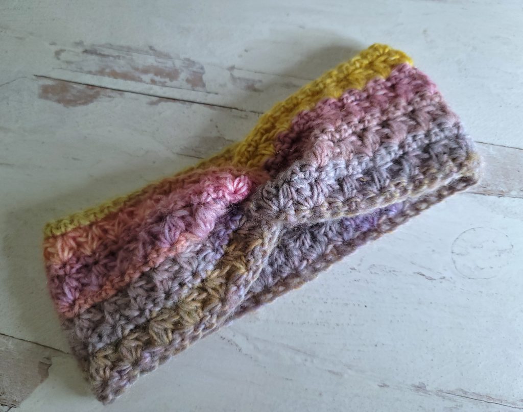 This Mixed Cluster Knotted Headband uses the mixed cluster stitch to make a quick headband with lots of texture. It works up so quick you can finish this in a few hours. It only uses less than a skein of yarn, so it’s perfect for using up scrap yarn.