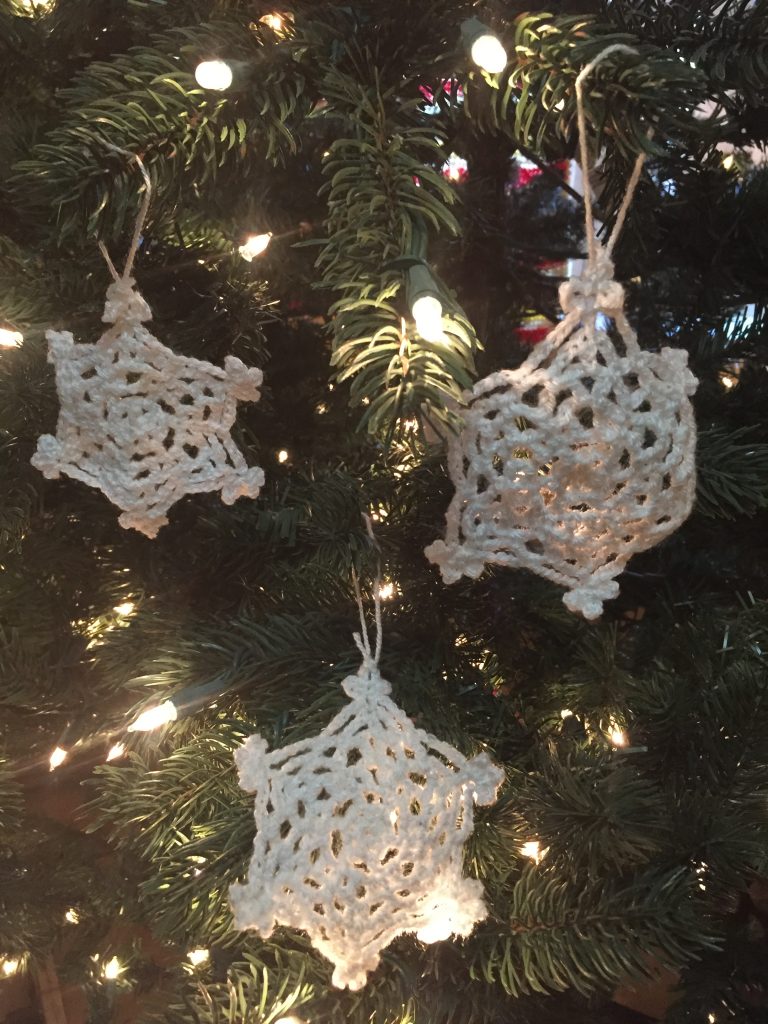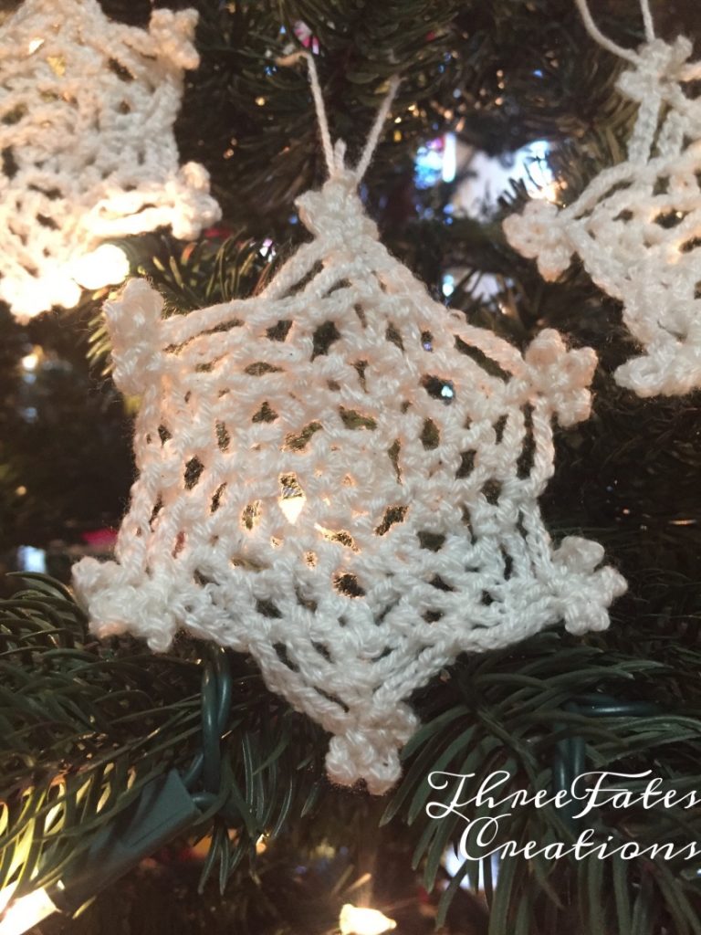 Here is a quick and easy snowflake pattern that can be made in an hour. And, each one takes very little yarn so one skein will be enough to make a bunch. You can use them as ornaments, or to hang them on gifts or string a bunch together to make a garland.